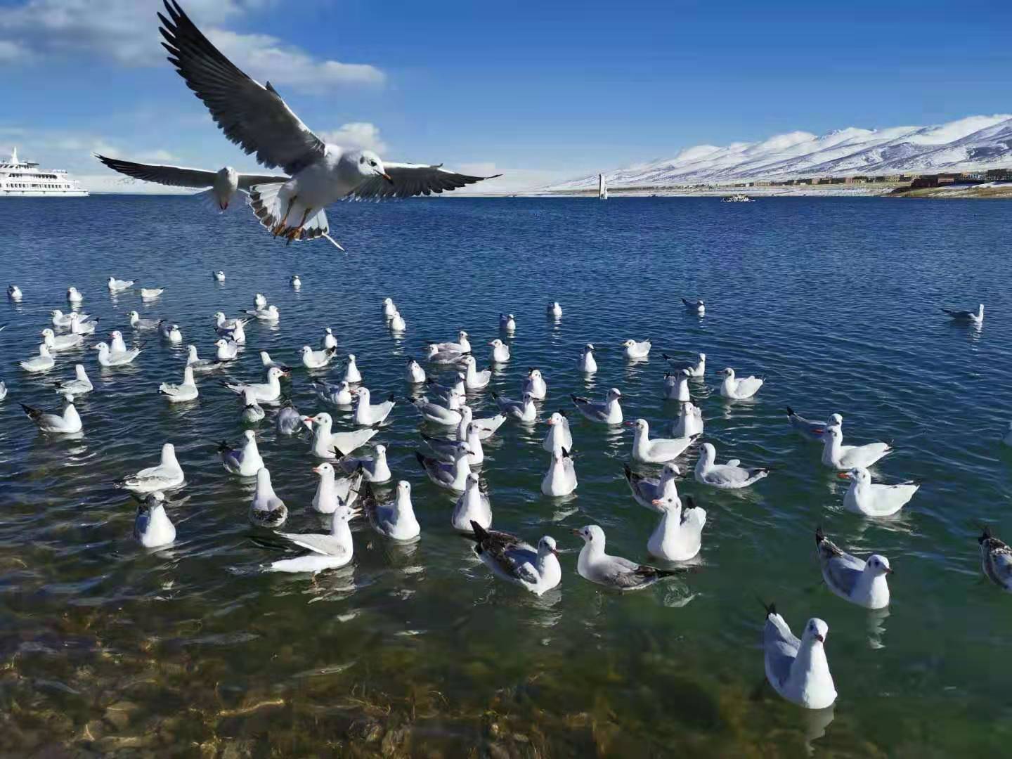 青海湖是中亞—印度、東亞—澳大利亞國際水鳥遷徙的重要節(jié)點(diǎn)和青藏高原水鳥重要的越冬地,水鳥種類95種,占青藏高原水鳥種類的70%,約占全國水鳥種類的33%,每年在青海湖繁殖的斑頭雁、棕頭鷗、漁鷗、普通鸕鶿繁殖種群達(dá)到全球繁殖種群的30%,每年春、秋兩季,途經(jīng)青海湖遷徙停留的水鳥達(dá)10萬余只,其中有11—14種水鳥的種群數(shù)量達(dá)到或超過全球分布種群數(shù)量的1%,每年冬季在青海湖越冬水鳥1萬余只,其中國家Ⅱ級保護(hù)動(dòng)物大天鵝約1500只。國家Ⅰ級重點(diǎn)保護(hù)動(dòng)物黑頸鶴在青海湖濕地草甸地帶棲息繁殖。