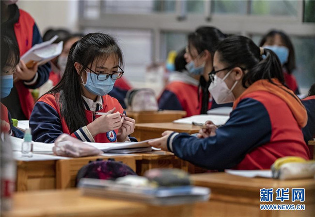 3月23日,昆明市第一中學(xué)高三年級(jí)學(xué)生在教室里準(zhǔn)備上課。新華社記者 江文耀 攝