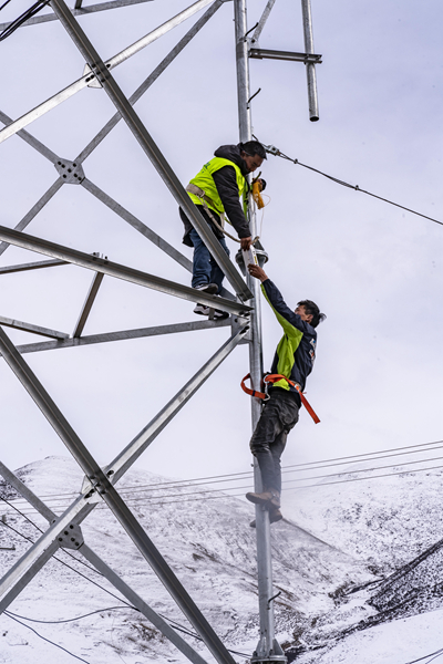 在距離當(dāng)雄縣城約80公里左右的烏瑪塘鄉(xiāng)巴嘎村,中國(guó)電信集團(tuán)拉薩分公司當(dāng)雄電信局的技術(shù)人員在調(diào)試基站設(shè)備(3月6日攝)。新華社記者 孫非/攝