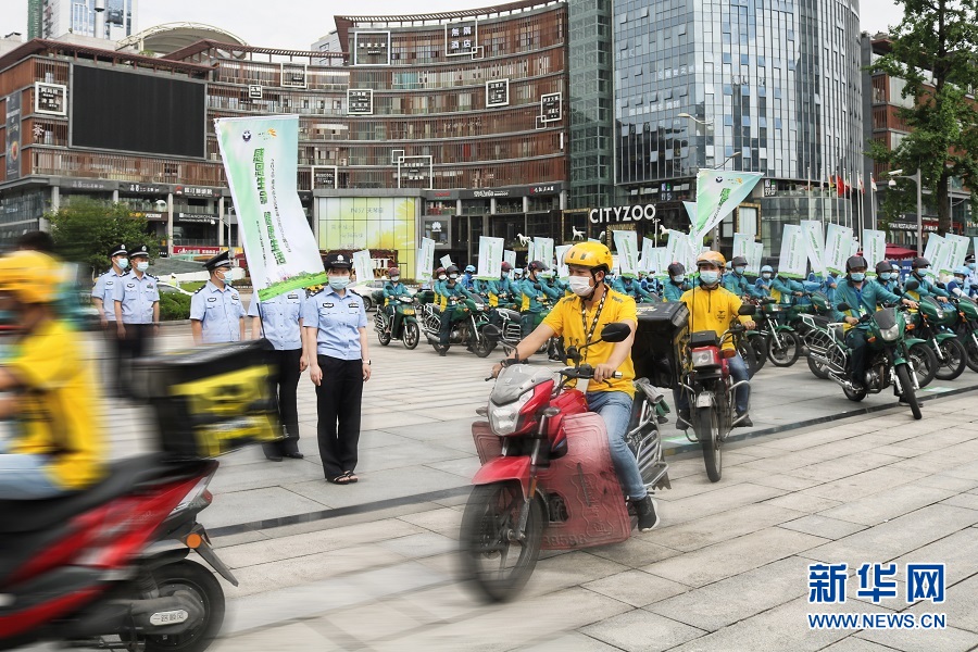 在重慶,像周歡這樣的騎手禁毒志愿者有60名。新華網(wǎng)發(fā) (滕華 攝)