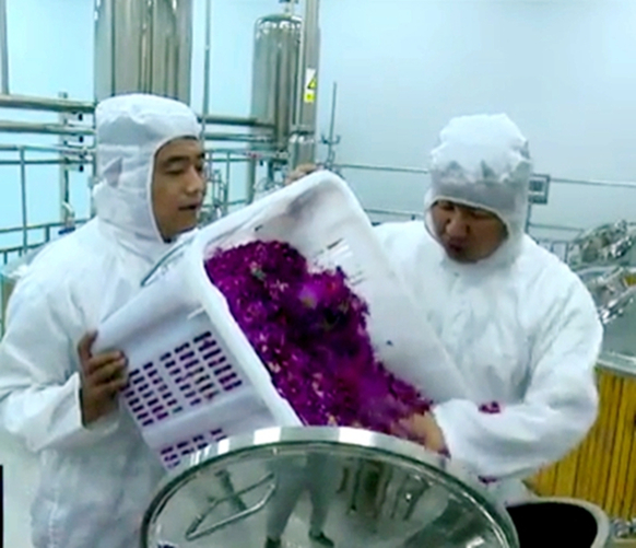 永登縣大手印玫瑰生產(chǎn)加工有限公司在工藝升級(jí)后,產(chǎn)能隨之?dāng)U大,收購(gòu)的鮮花量達(dá)到800噸,能夠幫助苦水鎮(zhèn)新屯川村和上新溝村3000戶花農(nóng)增收致富。目前,永登縣玫瑰種植面積達(dá)10.16萬畝,帶動(dòng)建檔立卡貧困戶3000多戶,玫瑰產(chǎn)業(yè)成了當(dāng)?shù)孛撠毐夹】档闹еa(chǎn)業(yè)。