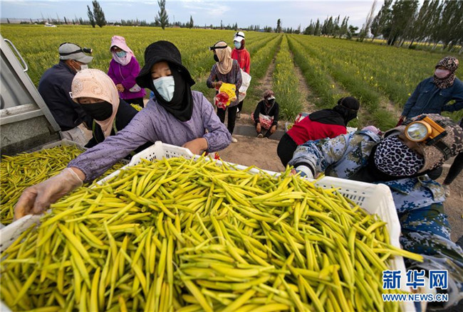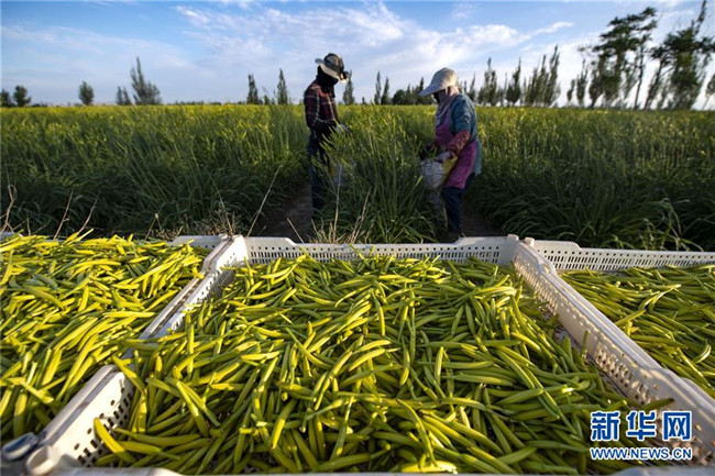 7月16日,農(nóng)民在寧夏鹽池縣惠安堡鎮(zhèn)大壩村采摘黃花菜。 新華社記者 馮開(kāi)華 攝