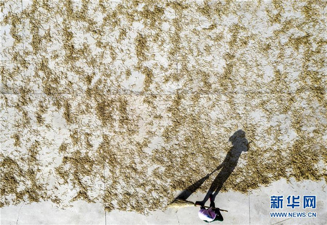 7月16日,農(nóng)民在寧夏鹽池縣惠安堡鎮(zhèn)大壩村晾曬黃花菜(無(wú)人機(jī)照片)。 新華社記者 馮開(kāi)華 攝