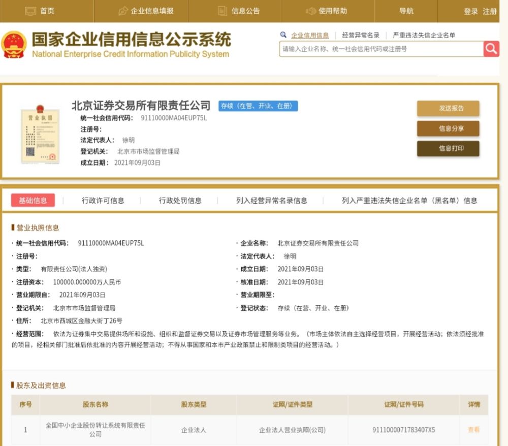 北京證券交易所有限責(zé)任公司注冊成立,將讓越來越多“專精特新”企業(yè)得到資本市場助力。圖片來源:國家企業(yè)信用信息公示系統(tǒng)官網(wǎng)