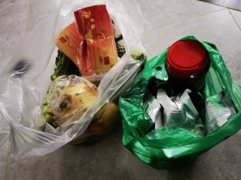 我下沉在我居住的小區(qū)百貴園,小區(qū)不大,實際入住了244戶。下沉干部和志愿者主要負責愛心菜的消殺、接收、分揀、分組投送入戶,各個流程有條不紊地進行著,我負責一個單元的投送入戶。