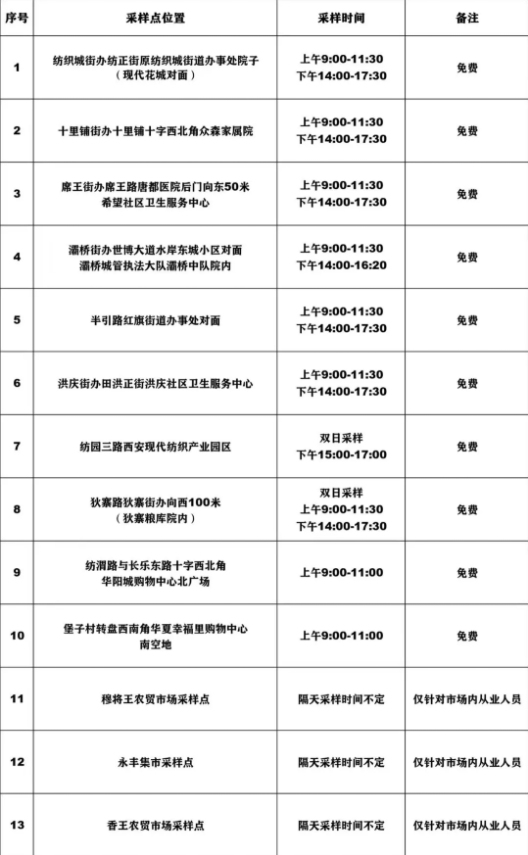 結(jié)合當前疫情防控總體形勢,為進一步做好復工復產(chǎn)和社會保供等方面保障工作,我市這些區(qū)域設置核酸檢測采樣點位,滿足市民需求。