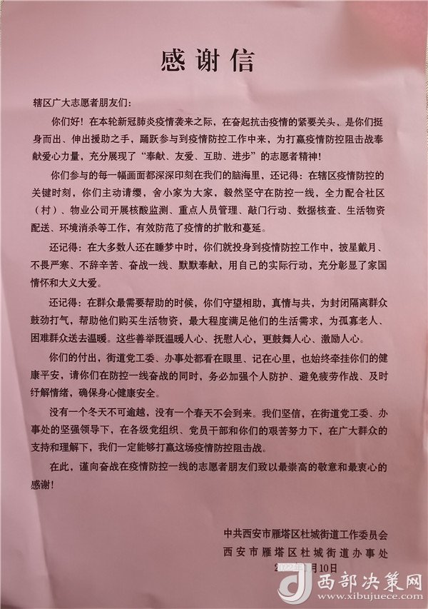 馳援抗疫顯石油擔(dān)當(dāng)。截至目前,中油測井志愿者已協(xié)助完成718次扶老助殘、2884小時(shí)值守執(zhí)勤、3136戶入戶排查幫扶、15945人次流調(diào)、37047條信息統(tǒng)計(jì)、60831份物資配送保障、570389人次核酸檢測,頻頻收到來自各社區(qū)居民委員會的感謝信,得到社區(qū)小區(qū)工作人員、居民們的紛紛點(diǎn)贊。(供稿人:王曉菲)