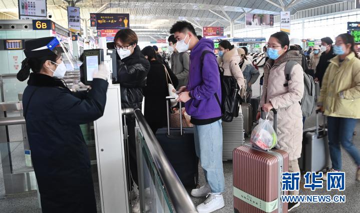 1月16日,西安北客站,離校返鄉(xiāng)的西安高校學(xué)生在排隊進站。新華社記者 陶明 攝