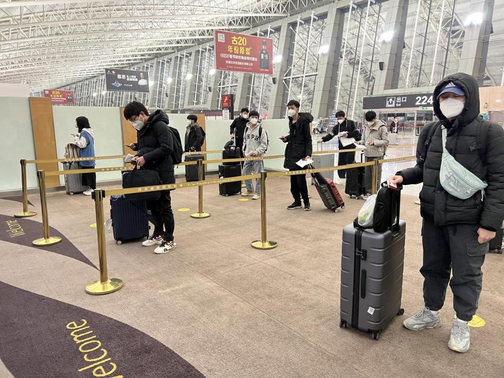 1月20日凌晨5點(diǎn)10分,西安天還未亮,首都航空西安基地的保障人員已經(jīng)就位,等候?qū)W生們的到來。6點(diǎn)39分,第一輛學(xué)生大巴到達(dá)機(jī)場,在工作人員的指引下,大家間隔1米接受核碼查驗,有序進(jìn)入候機(jī)樓辦理值機(jī)手續(xù)。8點(diǎn)34分,162名學(xué)生已全部辦理完值機(jī),托運(yùn)行李148件,陸續(xù)通過安全檢查候機(jī)。9點(diǎn)31分,學(xué)生開始登機(jī),并依次使用手部消毒,認(rèn)真落實(shí)各項防疫政策,9點(diǎn)43分,162名學(xué)生已全部登機(jī)完畢。