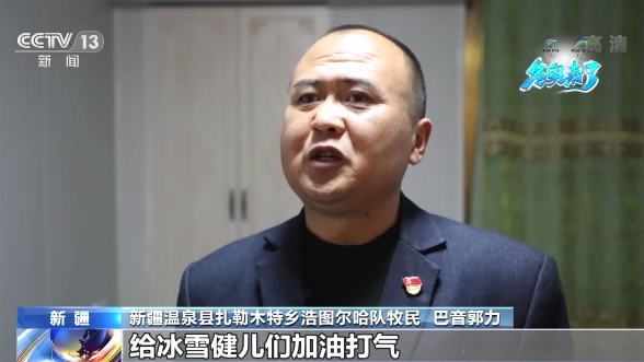 新疆溫泉縣扎勒木特鄉(xiāng)阿茨隊牧民 德·烏別克:即將在首都北京舉辦的2022年冬奧會的參賽健兒們,在我們家鄉(xiāng)進行了為期一個半月的訓練,在這么冷的天氣中,他們堅持訓練真的很辛苦,奧運健兒們啟程參加冬奧會之日,我們騎著駿馬揮舞著國旗,以不舍的心情為他們送行,祝他們?nèi)〉煤玫某煽儭?/p>