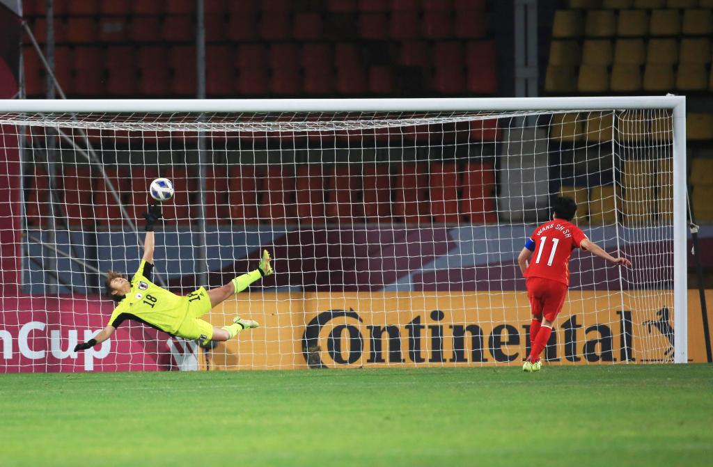 2月3日,中國(guó)隊(duì)球員王珊珊(右)在點(diǎn)球大戰(zhàn)中破門。新華社發(fā)(賈韋德·達(dá)爾攝)