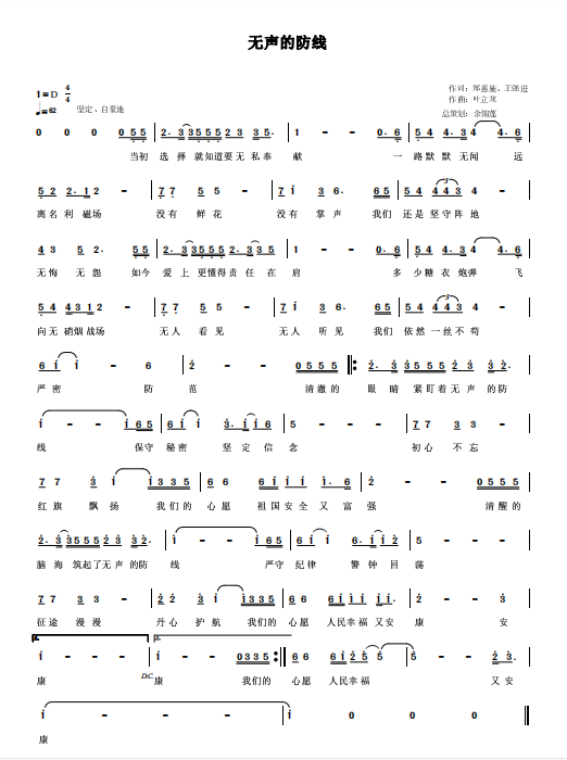 慶祝建黨百年獲獎歌曲作品選集——《無聲的防線》詞曲。