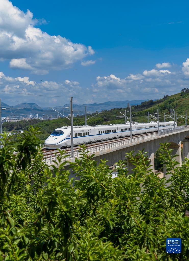 8月23日,綜合檢測(cè)車通過(guò)彌蒙高鐵南洞3號(hào)特大橋。新華社發(fā)(吳宇 攝)