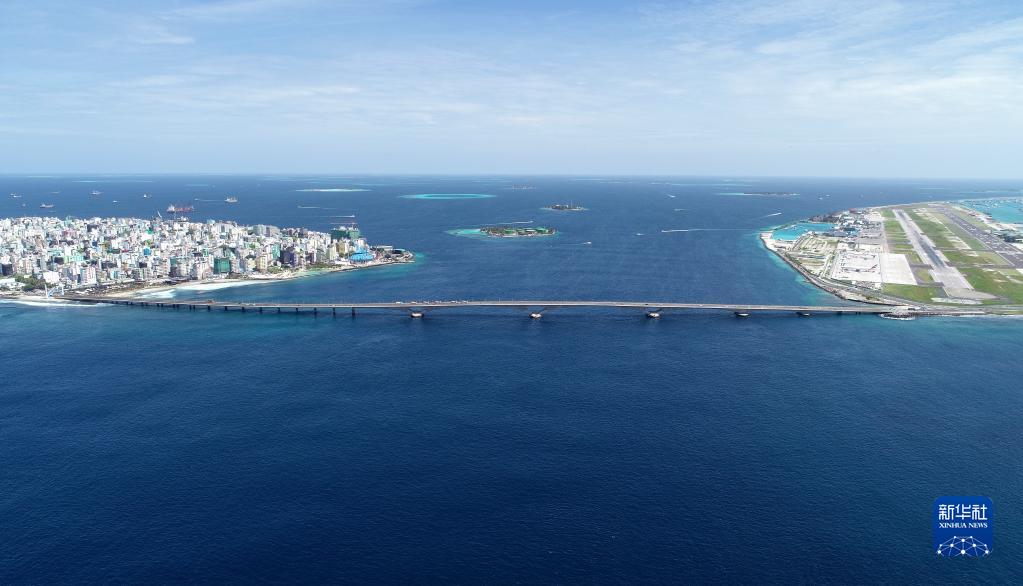 這是在馬爾代夫航拍的連接首都馬累和機(jī)場(chǎng)島的中馬友誼大橋(2019年8月30日攝)。新華社發(fā)(王明亮 攝)