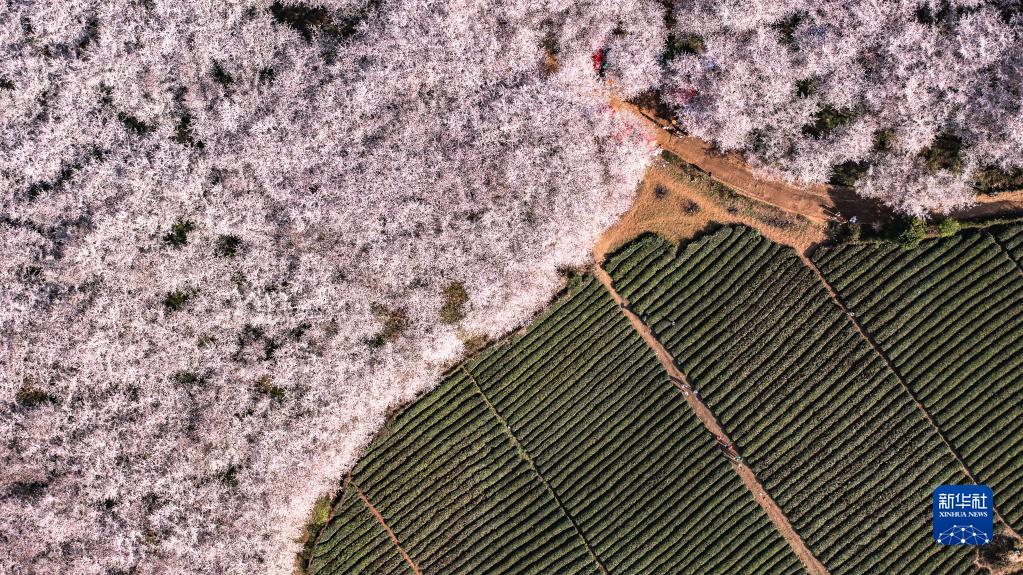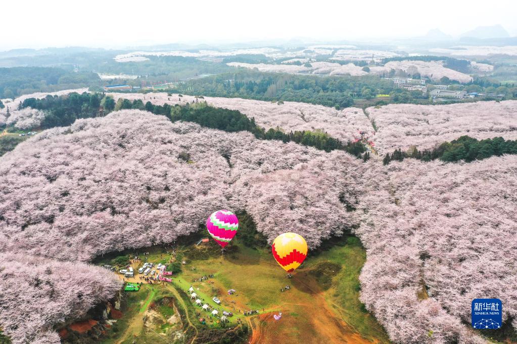 這是3月21日拍攝的貴州省貴安新區(qū)櫻花園(無人機(jī)照片)。新華社記者 楊文斌 攝