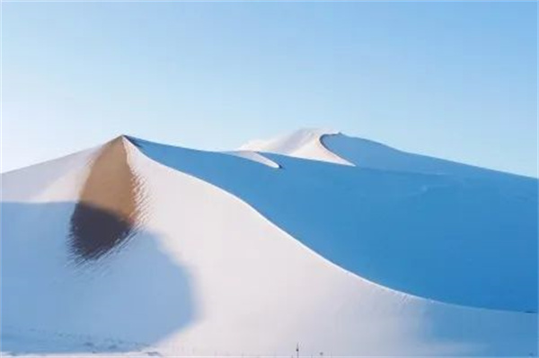 冬日的鳴沙山,皚皚白雪鋪天蓋地,將整個沙山脈裝點得如詩如畫,月牙泉被冰雪包圍,泉面的雪花堆積有如瓊漿玉液,無盡的潔白,湛藍、純白交相輝映,更顯神奇,吸引著眾多游客前來欣賞大漠雪色。